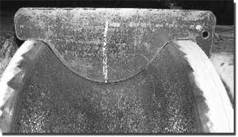 Испытания проводили на валках первой и второй клетей как наиболее нагруженных. Валки первой клети были извлечены из стана после прокатки 5000 т труб. Износ дна калибра валков составил 0,30,5 мм (рис. 1). Состояние поверхности калибров валков удовлетворительное, поверхность гладкая, без трещин (рис. 2). Износ дна калибров валков второй клети составил 1,5-2,0 мм после прокатки 8790 т труб.